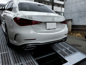 ベンツ C200 リアバンパー交換、左リアフェンダー 板金
