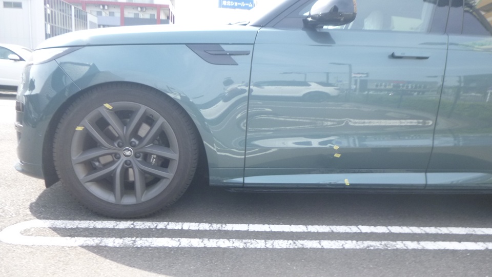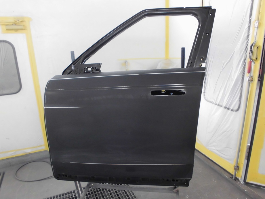 ゴミや埃を遮断した塗装ブース内にて、新品のフロントドアを専用塗装台にセットし、フロントフェンダーおよびリアドアのぼかし塗装を実施します。